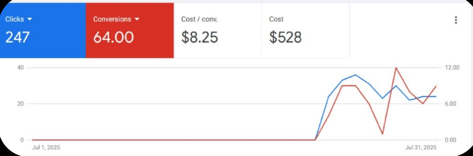 The total cost $411 generated 64 conversions, resulting in a low Cost / conv of $8.25.